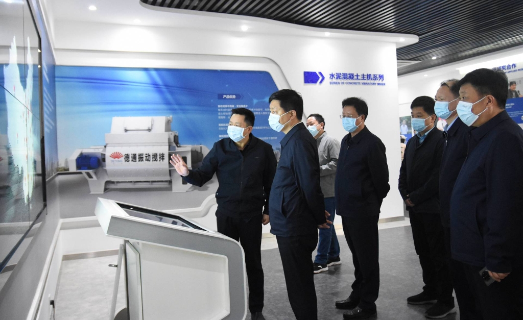 劉濤市長走進(jìn)德通數(shù)字化展廳、總裝車間和遠(yuǎn)程控制中心,詳細(xì)了解科技研發(fā)、市場銷售等情況,勉勵企業(yè)加大研發(fā)投入,掌握自主核心技術(shù),因地制宜打造“無廢產(chǎn)業(yè)”發(fā)展的應(yīng)用場景、特色亮點;加快振動攪拌技術(shù)與信息技術(shù)的融合創(chuàng)新,做大做強“德通系”產(chǎn)業(yè)品牌,打造智能制造標(biāo)桿企業(yè)。