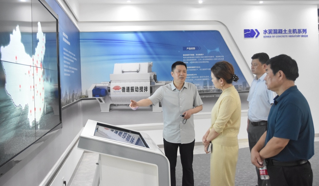 公司董事長張良奇陪同陳芳處長一行參觀了德通數(shù)字化展廳、振動攪拌設備總裝車間、遠程技術服務中心,并匯報了德通在技術研發(fā)、市場推廣、政產(chǎn)學研用合作、科技創(chuàng)新平臺建設等方面取得的成果。