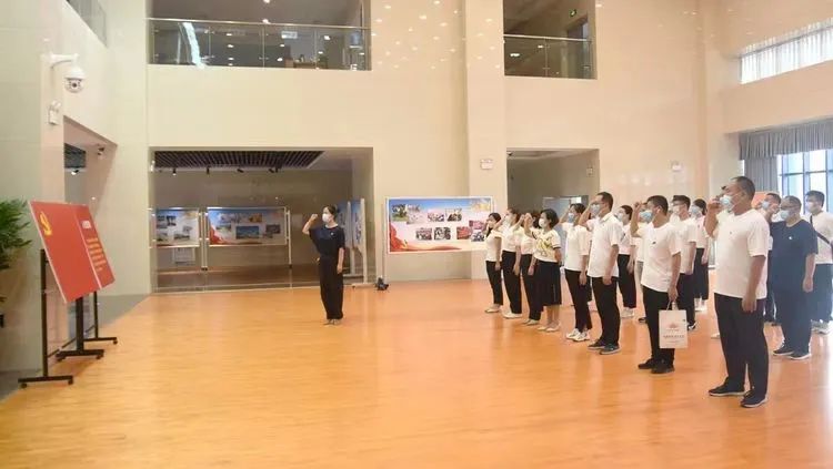 參觀之前,全體黨員莊嚴(yán)宣誓,重溫了入黨誓詞,銘記黨的宗旨。